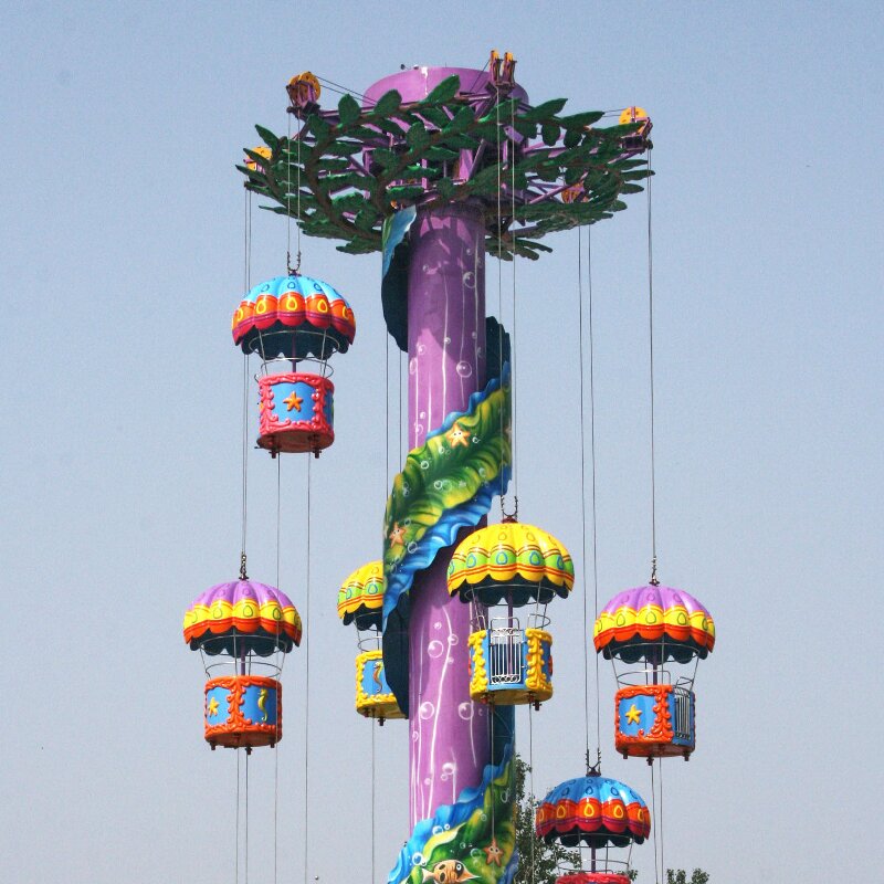 Parachute Scenic Drop Tower offers thrilling, family-friendly free-fall fun with vibrant parachute-themed gondolas. آمن, ملون, and easy to operate—perfect for adding excitement and charm to any amusement park or entertainment center.