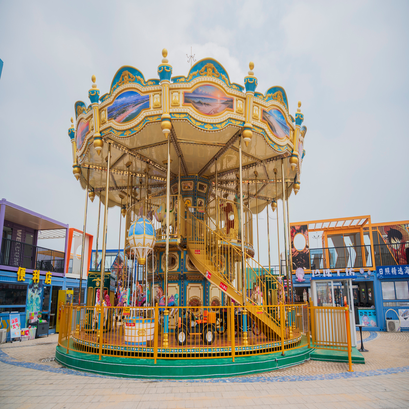 Die innovative Doppelschichtstruktur maximiert nicht nur die Fahrkapazität, sondern schafft auch ein dynamisches visuelles Spektakel. Die oberen und unteren Decks werden mit lebendiger Beleuchtung beleuchtet, Mehrfarbige Lichter, Fügen Sie einen Hauch von Magie hinzu, der am hellsten scheint, wenn die Nacht fällt. Das elegante Design des Karussells wird durch charmante Details ergänzt, Mit majestätischen Pferden und entzückenden Fantasy -Kreaturen, die Besucher in eine Welt des Staunen transportieren.