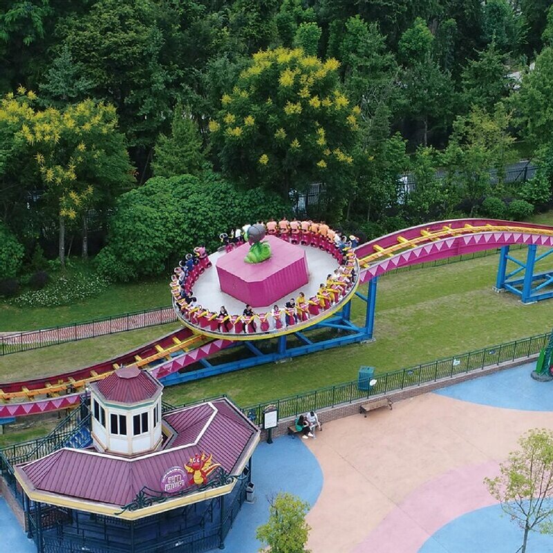 This model uses one disc (turntable) 그리고 one train, offering a rated capacity of 24 승객 per cycle with a ride duration of about 180 seconds. With a 91 m track length and an operating speed up to 46 km/h, it delivers thrilling pacing while maintaining efficient daily operation. The ride reaches a strong skyline presence with 12.7 m track height 그리고 13 m operating height, making it easy to spot, easy to market, and highly photogenic—especially with customized lighting and themed façade design.