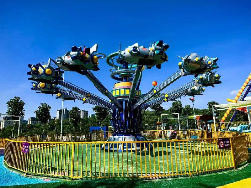 Operating at a comfortable speed of 7-8 circles per minute, the ride provides a gentle yet exciting experience suitable for children and families.