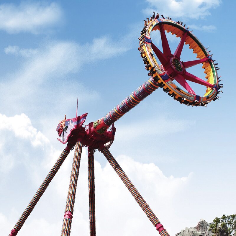 This model reaches an impressive 28 m operating height and features an equipment height of 18.8 m, giving it a commanding skyline profile that’s easy to market as a signature attraction. The motion system delivers ±110° reciprocating swing, generating intense acceleration and “floating” sensations at the top of each arc—exactly the kind of high-energy experience that encourages repeat rides and boosts guest engagement.